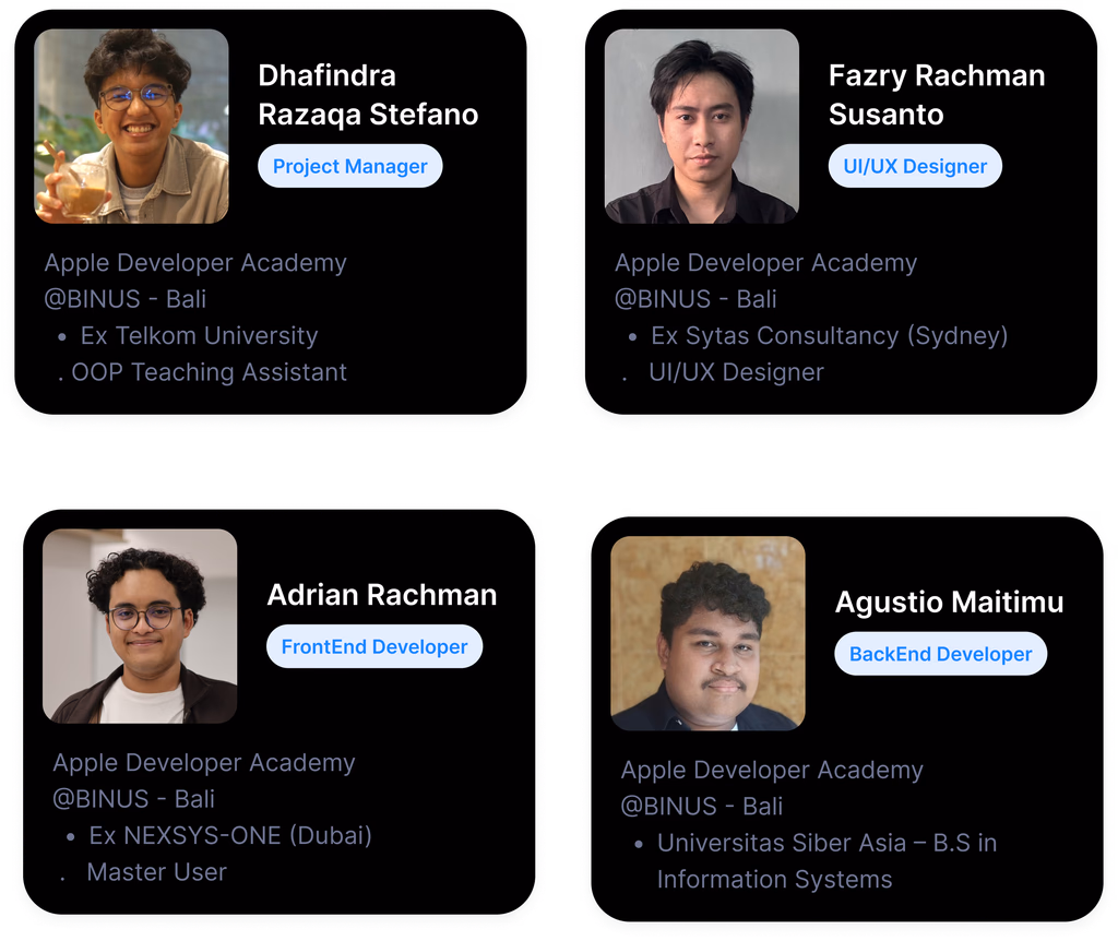 Proudly built at Apple Developer Academy @Bali 2025, refined by the Apple Developer Institute for Entrepreneurship, and trusted by over 11,000+ riders.